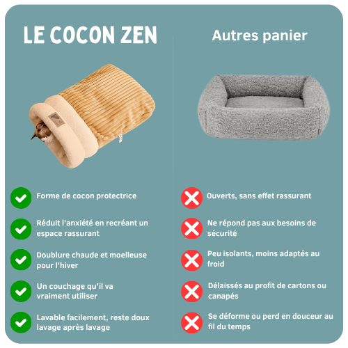 Le Cocon Cosy est spécialement conçu pour répondre à l’instinct naturel des félins qui adorent se cacher dans des espaces confinés.