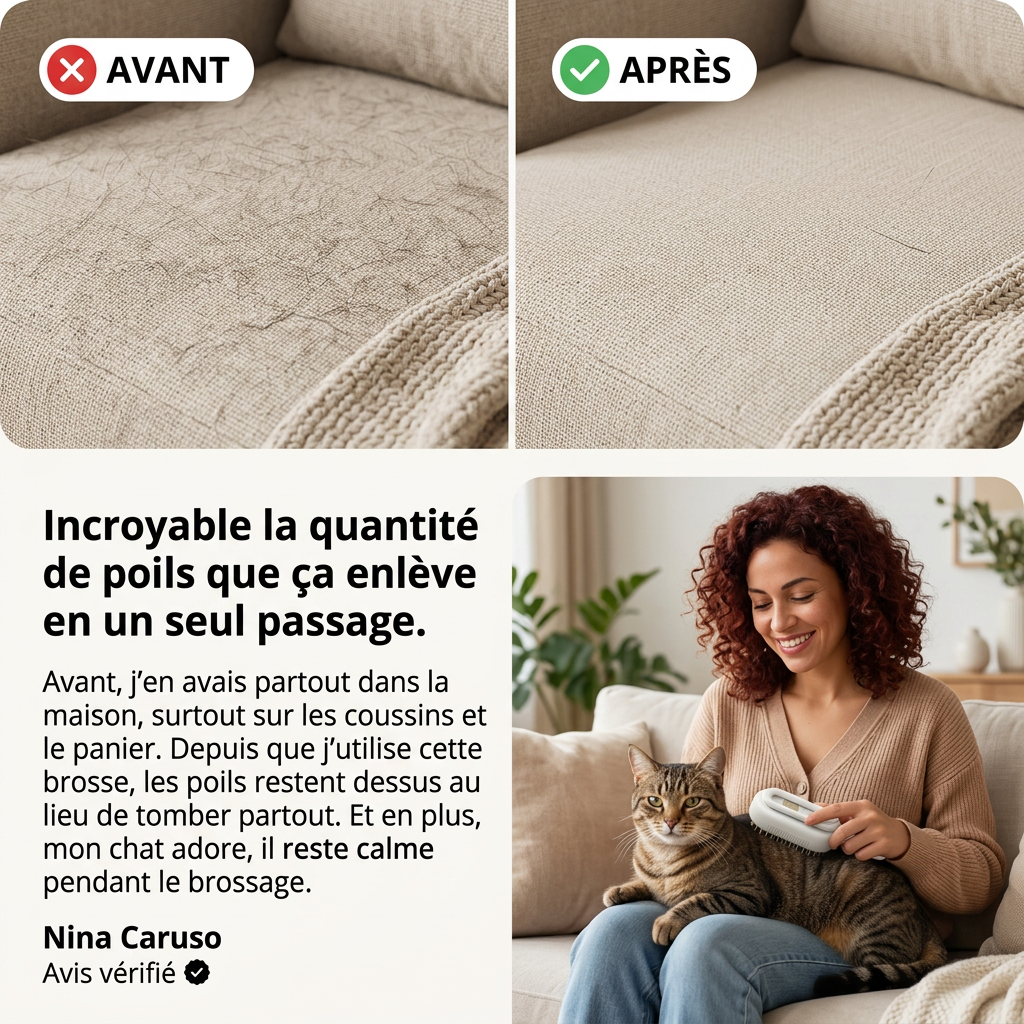 Oui, la brosse a été conçue pour être aussi silencieuse que possible, et son action de massage combinée à la vapeur apaisante peut même contribuer à calmer les animaux anxieux. Les retours de nombreux propriétaires soulignent que leurs animaux adorent ce moment de détente.