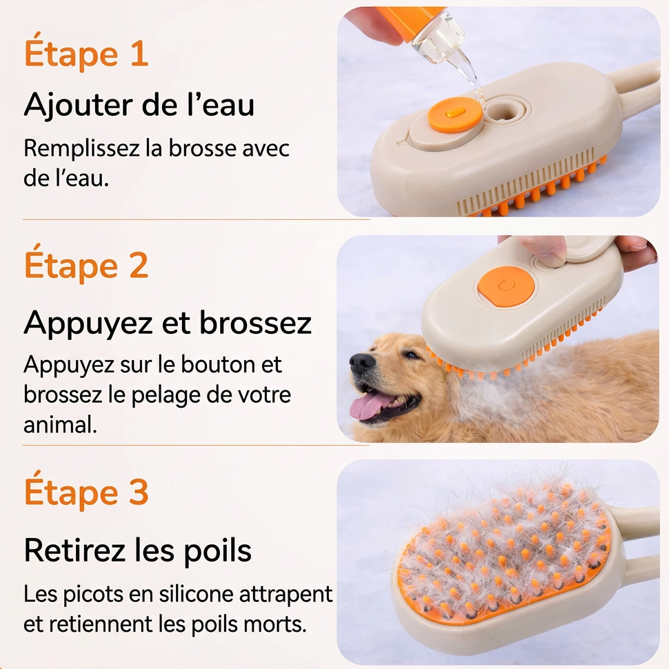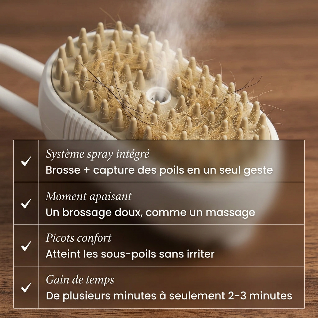 Oui, la brosse Spritz™ utilise une vapeur douce spécialement conçue pour être sans danger pour la peau et le pelage des animaux. Elle aide à détacher et à récupérer les poils sans irriter votre animal, tout en améliorant la qualité de son pelage grâce à l’humidité apportée par la vapeur.