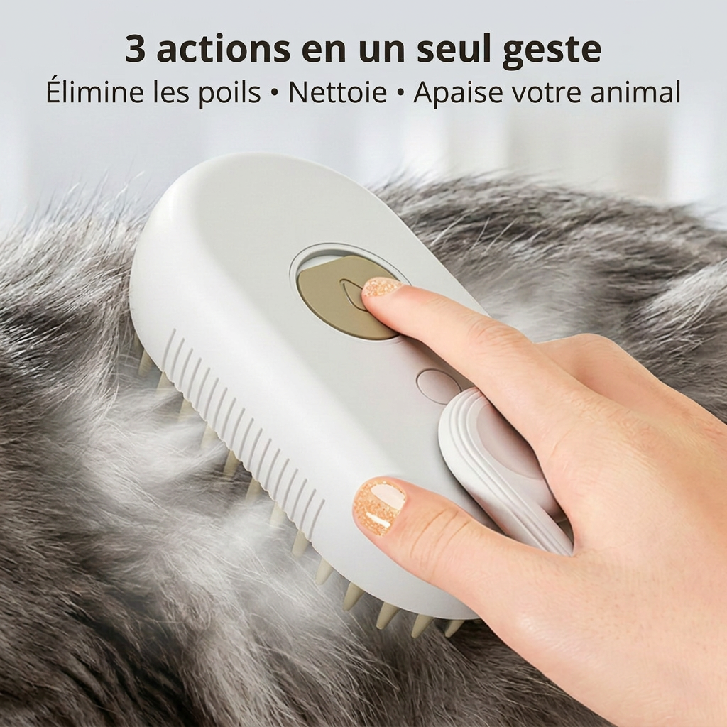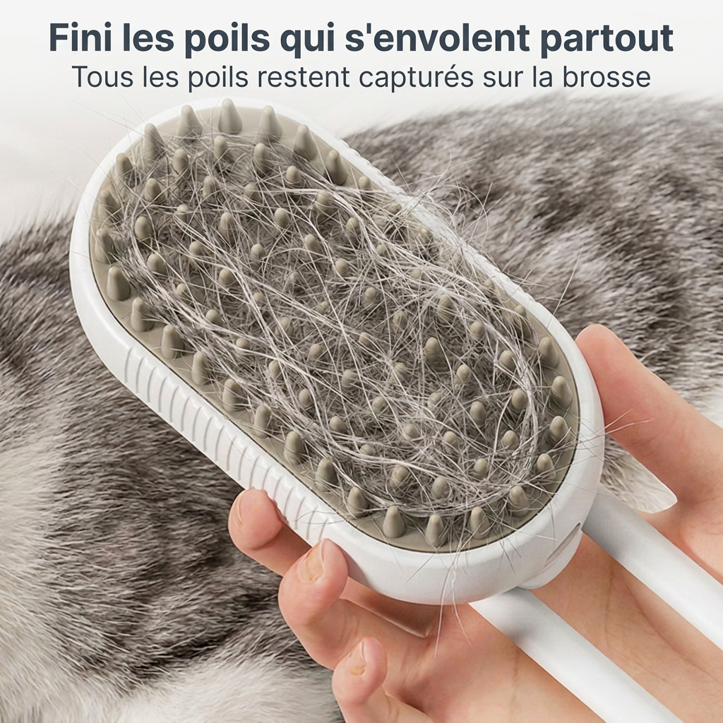Cette brosse chat poil long combine vapeur apaisante et massage stimulant, offrant une expérience de toilettage incomparable.