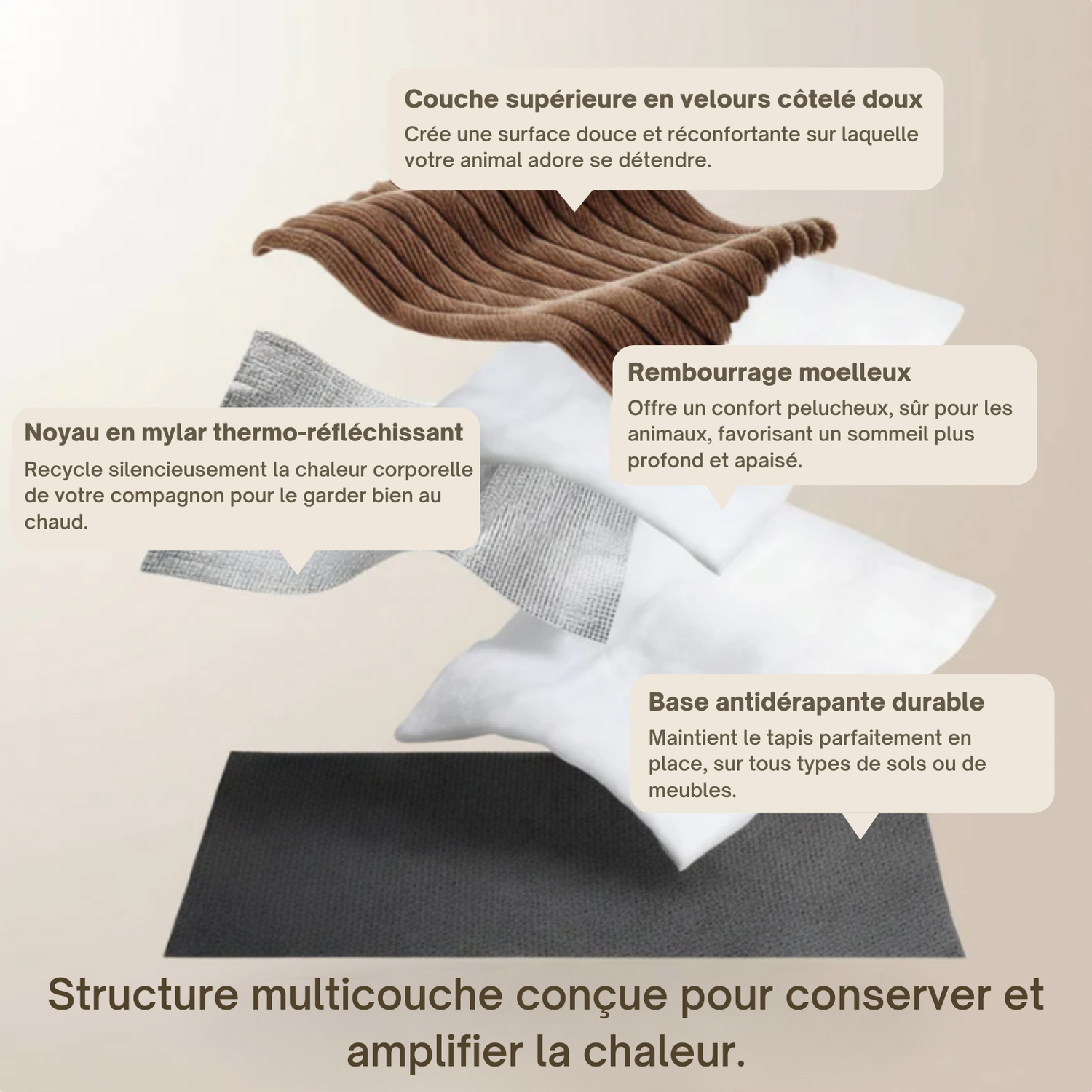 Ce tapis est idéal si vous cherchez à offrir chaleur et confort à votre chien ou chat, sans électricité.