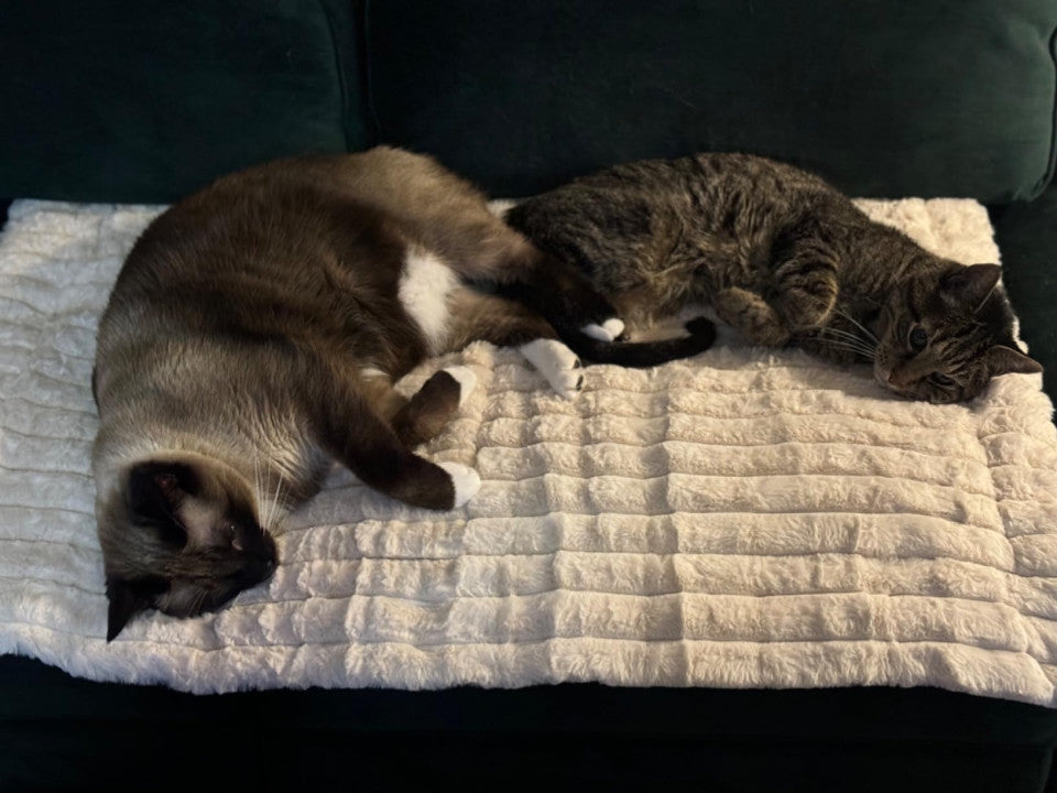 J’ai posé le tapis sur le canapé pour voir s’ils allaient l’utiliser. Résultat : mes chats passent leurs journées dessus. Ils s’y installent naturellement, se détendent et dorment côte à côte. La chaleur est douce et clairement agréable pour eux. J’envisage déjà d’en prendre un second.