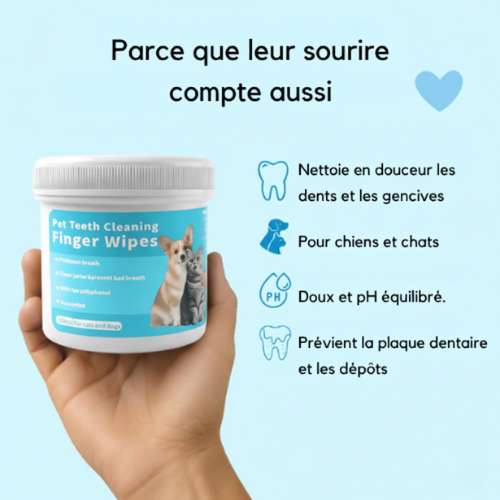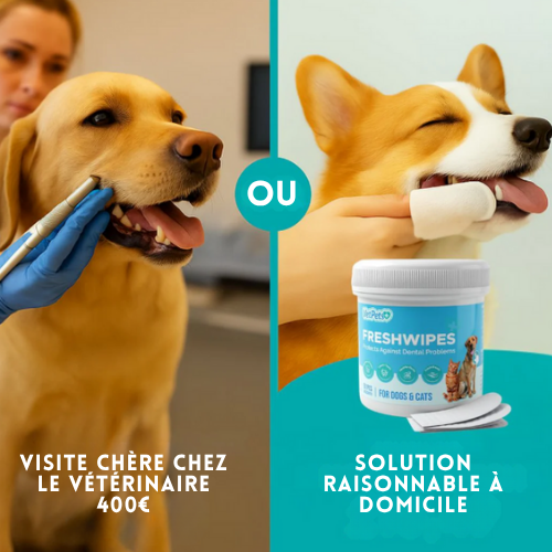 Avec FreshWipes™, vous avez enfin un moyen simple et doux de prendre soin de sa santé bucco-dentaire — sans vétérinaire, sans stress, sans incertitude.